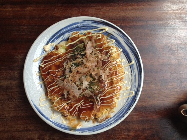 Okonomiyaki (try saying it when you’re drunk. Or indeed, when you’re sober) is a Japanese savourt pancake using egg as its base. Fillings can include meat, fish and noodles to really pad it out, topped with their version of brown sauce and mayonnaise, and sprinkled with bonito fish flakes.