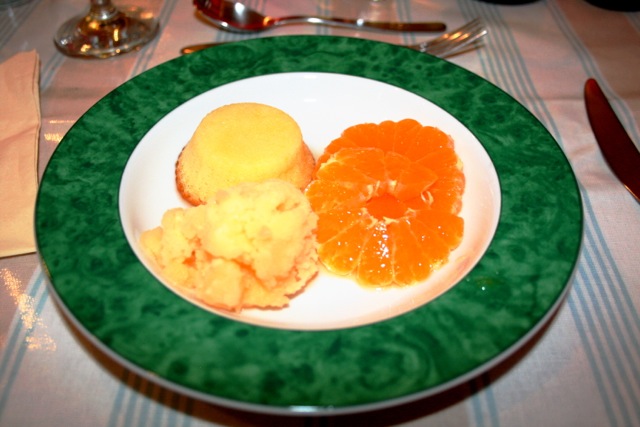 Dessert: Clementines in Cointreau syrup, lemon buttermilk pudding